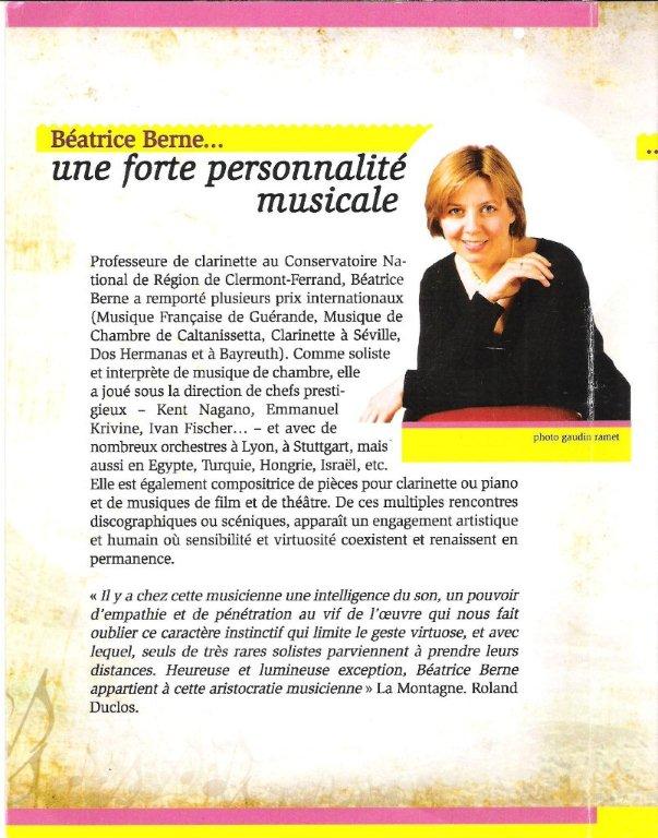 - Nous suivrons ensuite les Vents d’Irlande et d’ailleurs avec les concerts très virtuose de Béatrice Berne (clarinette) et Vincent Lhermet (accordéon de concert) qui joueront des airs traditionnels et classiques, Irish songs et celtic danses, mais nous feront aussi découvrir des compositeurs irlandais et finlandais inspirés.